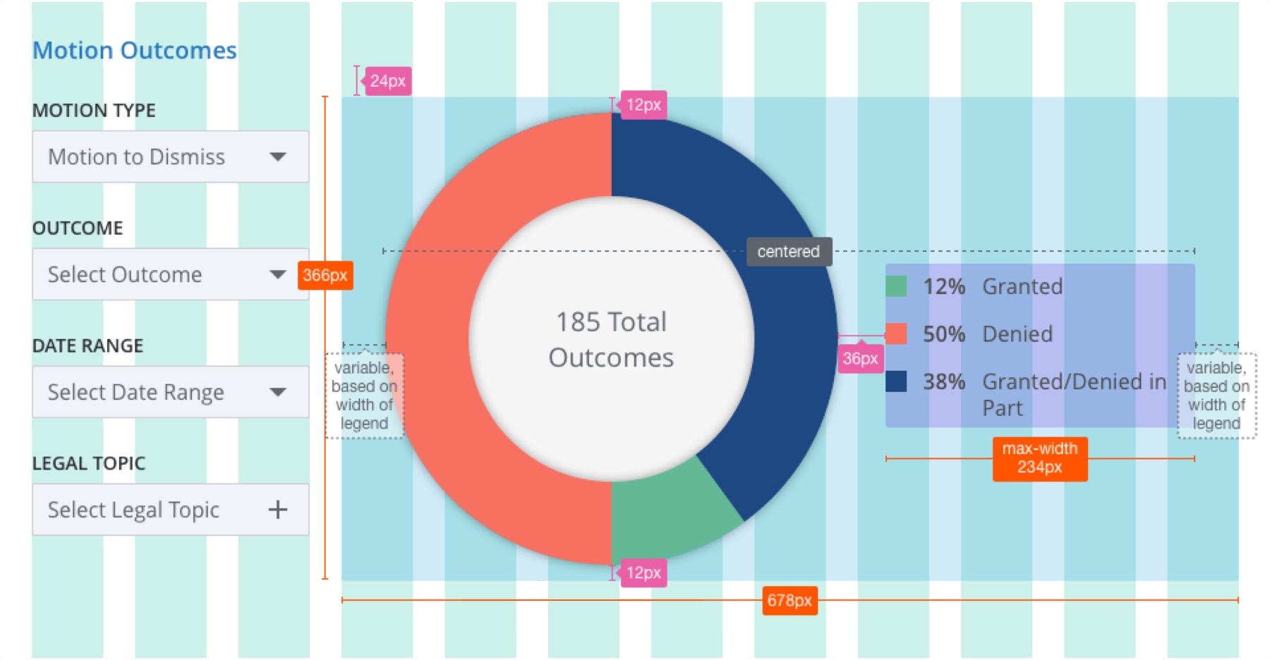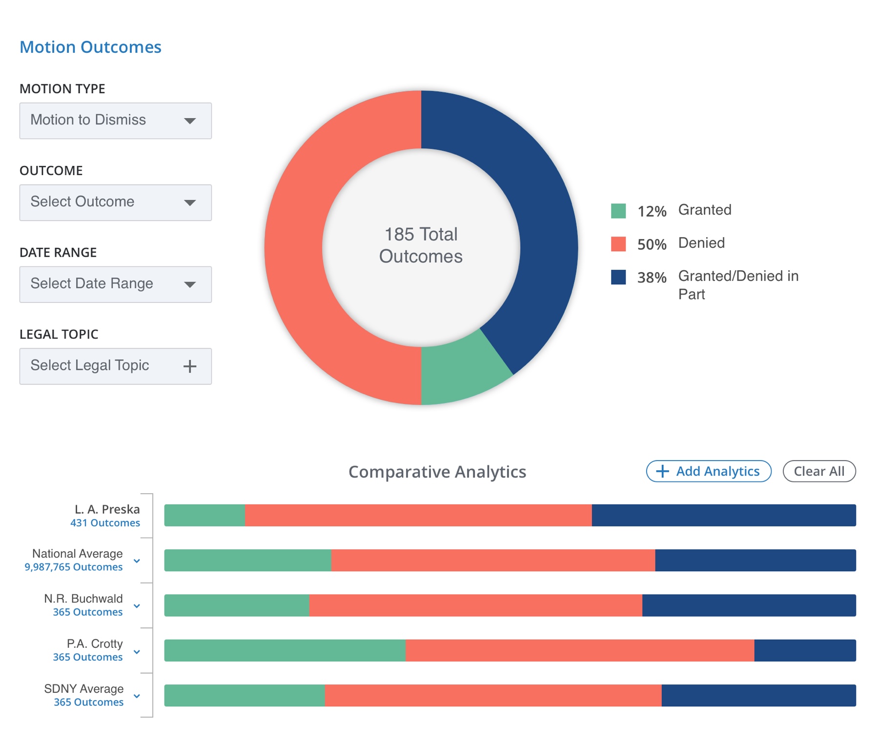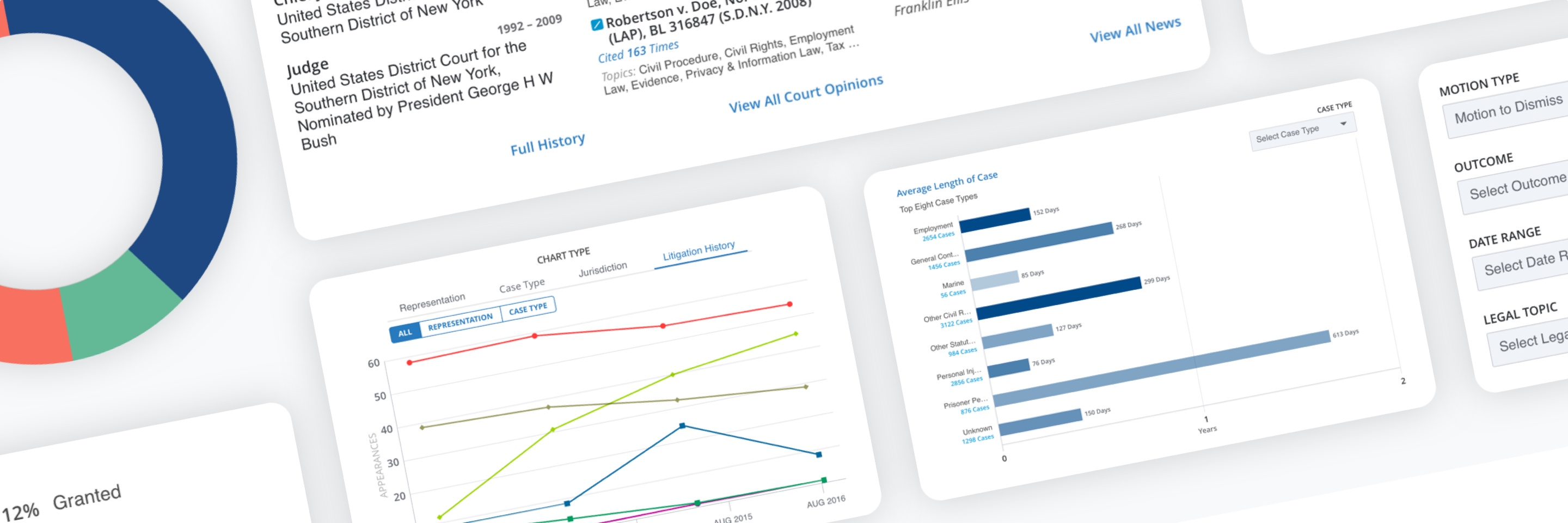 Consulting with attorneys and other legal researchers, we established which graphs and filters would yield valuable analysis and insights for this persona.