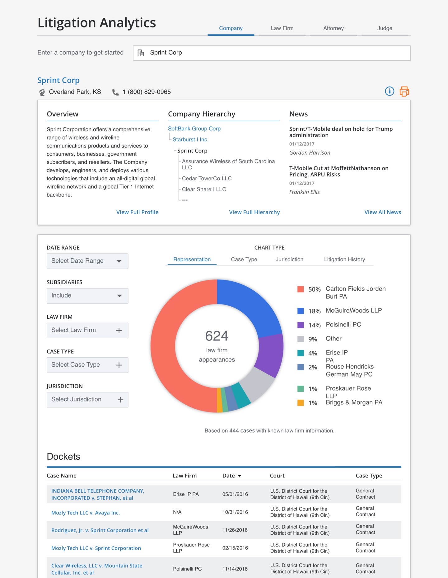 Once we shipped on the MVP I turned my focus to the remaining entity types: companies, law firms, and attorneys - all of which possessed their own nuances and unique modes required to provide valuable insights from the data.
